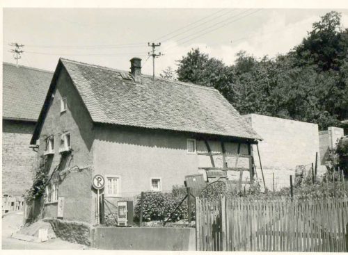 Auf diesem Grundstück stand ein kleines Häuschen (gehörte Fam. Stix). Zunächst wohnte man dort auf sehr beengtem Raum und betrieb das Geschäft für kurze Zeit.