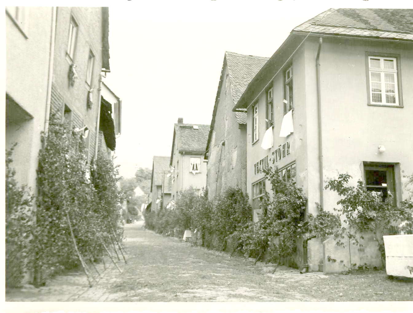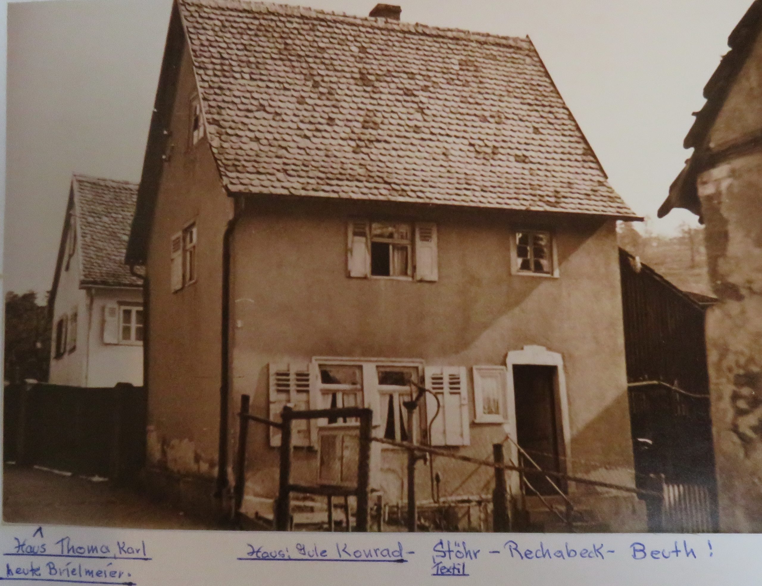 Auf diesem Grundstück stand ein kleines Häuschen (gehörte Fam. Stix). Zunächst wohnte man dort auf sehr beengtem Raum und betrieb das Geschäft für kurze Zeit.