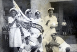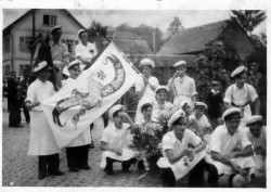 Kniehend: Heinz Geis, Florian Sanntag, Otto Geis, Hans Meier und Toni Geis