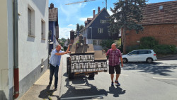 Ein Anruf beim Bauhof stoppte die Zerstörung. Der Schatzmeister Engelbert Pfeifer stellte seinen PKW mit Anhänger zur Verfügung, und zusammen mit einigen Mitgliedern machte man sich auf den Weg zum Bauhof in Bad Soden. Die Mitarbeiter des Bauhofs fanden unsere Blitzaktion großartig.