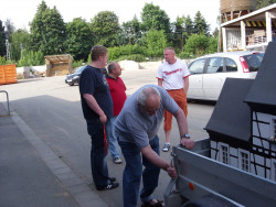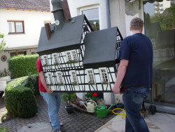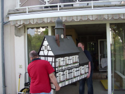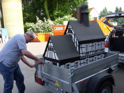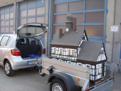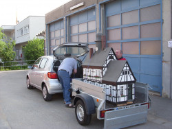 Nachdem die Modelle schnell verladen und gesichert waren, begann ein kleiner Konvoi die Reise nach Altenhain in die Staufenstraße, wo das Modell lange Zeit stand und regelmäßig zum Kerweumzug oder Herbstmarkt transportiert wurde.